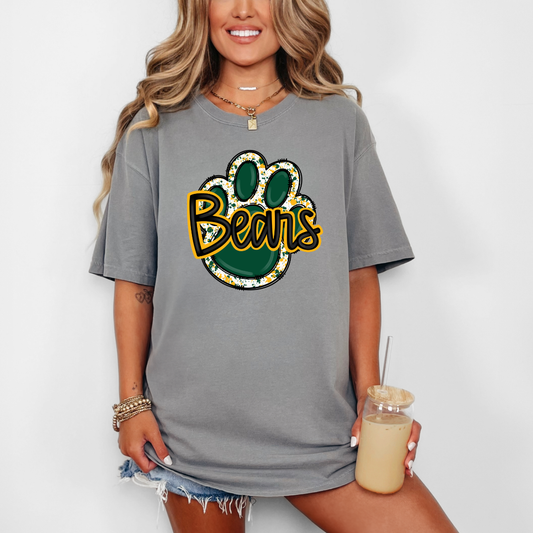Green and Gold Paw Print Comfort Colors® Shirt Retro Style Tee Game Day T-shirt Fan Gift Bears Mom T-Shirt Bears Fan Tee