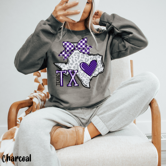 Texas Leopard Print Tee: Purple Bow, Frogs Fan Gear